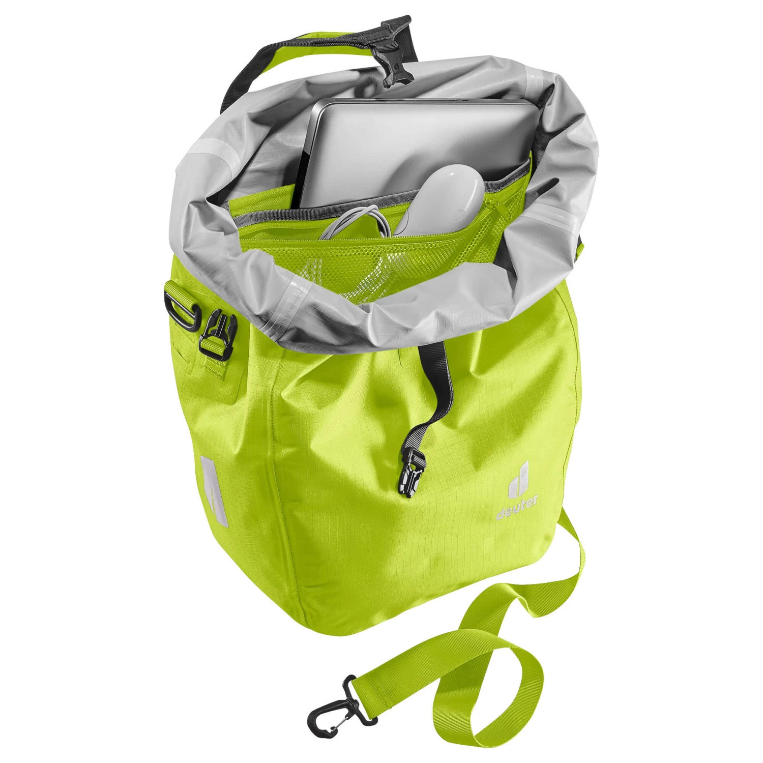 Die wasserdichte Fahrradtasche bewahrt Reisegepäck sicher vor dem Eindringen der Nässe durch Regen oder Spritzwasser. Dank des 2-Wege-Rolltopverschlusses kann das Volumen um zusätzliche 5 Liter erweitert werden. Die neu entwickelte BagFix-Halterung sorgt für maximale Bewegungsfreiheit, da die Last zu 100% auf dem Hinterrad und nicht auf dem Rücken des Bikers liegt. Die Tasche kann mit nur einem Handgriff vom Gepäckträger abgenommen und als Schultertasche verwendet werden. So sind ihrem Einsatz kaum Grenzen gesetzt.