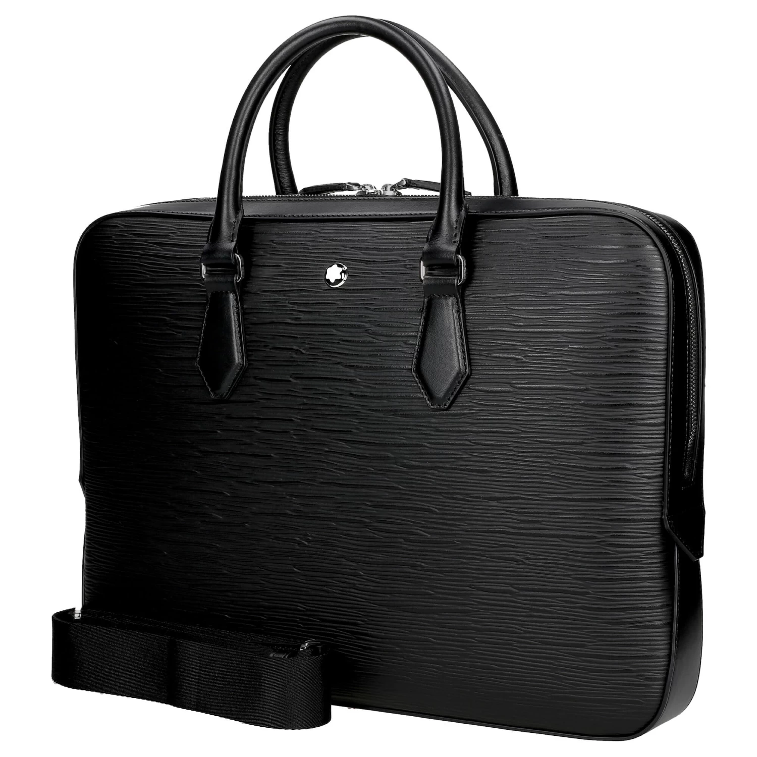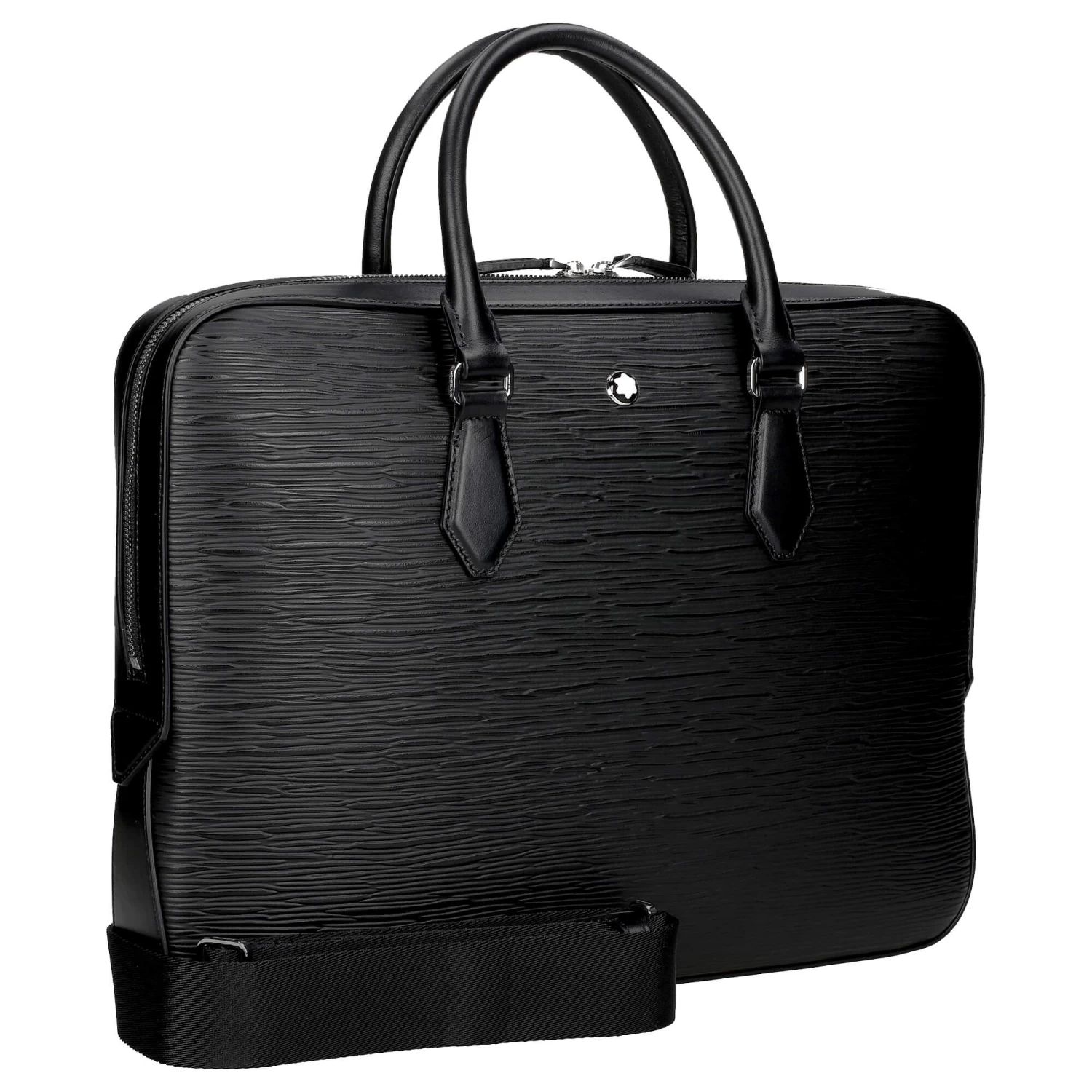 Die dünne Aktentasche aus der Meisterstück-Kollektion von Montblanc ist sowohl elegant als auch geräumig und kommt mit geprägtem Baumrindenmotiv.