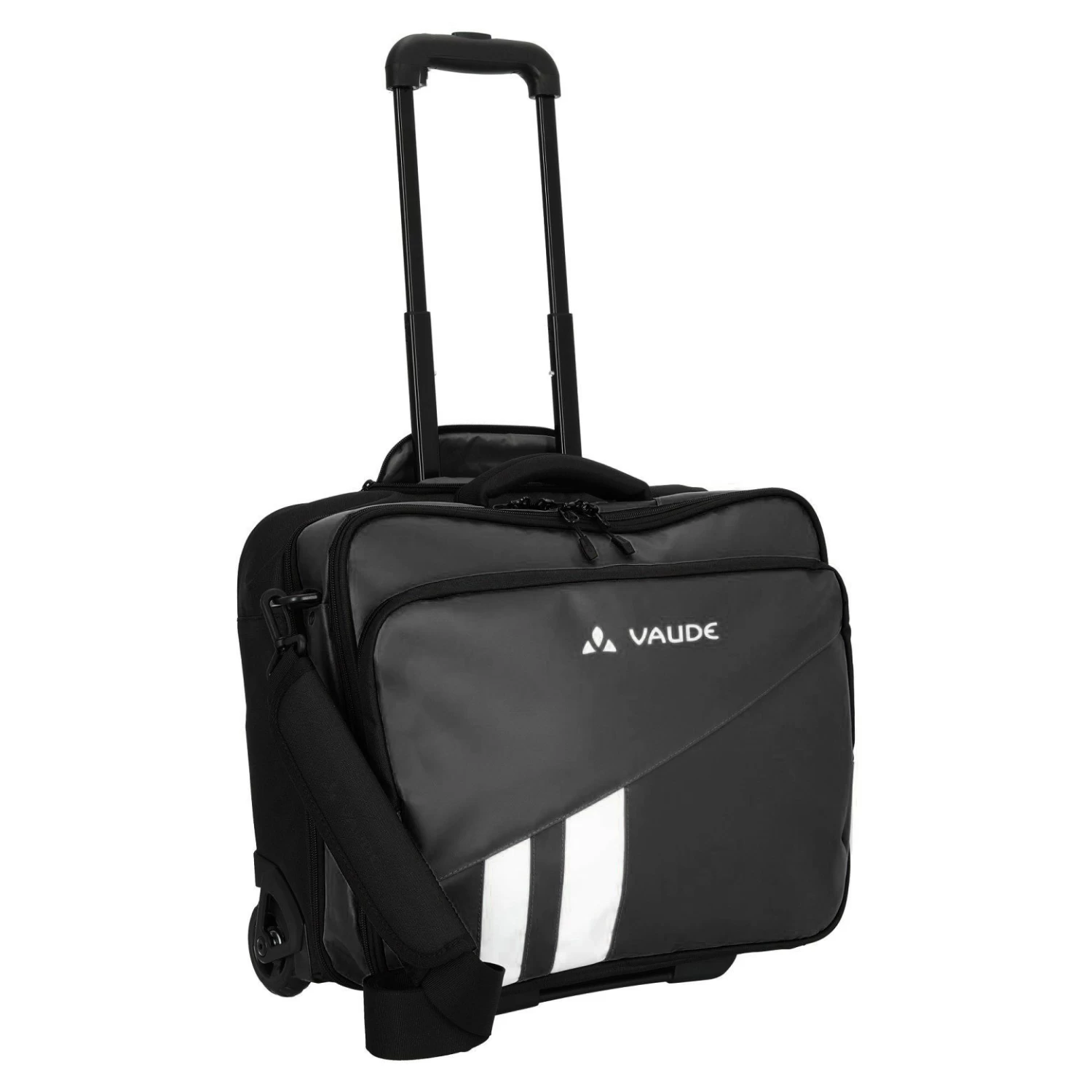 Der Tuvana Piloten-Koffer von Vaude wurde mit dem Eco Finish ausgerüstet. Diese wasserabweisende Ausrüstung wird auf den Oberstoff des Vaude Produktes aufgebracht. Dadurch perlen Regentropfen ab- und das ohne den Einsatz von umweltschädlichen Fluorcarbonen (PFC). Der Piloten-Koffer verfügt über ausreichend Platz für A4 Unterlagen und sorgt durch seinen Organzier in der aufgesetzten Fronttasche für Ordnung. Durch sein ausziehbares Gestänge und des abnehmbaren Schulterriemens können Sie den Koffer hinter sich herziehen oder auch auf der Schulter tragen.